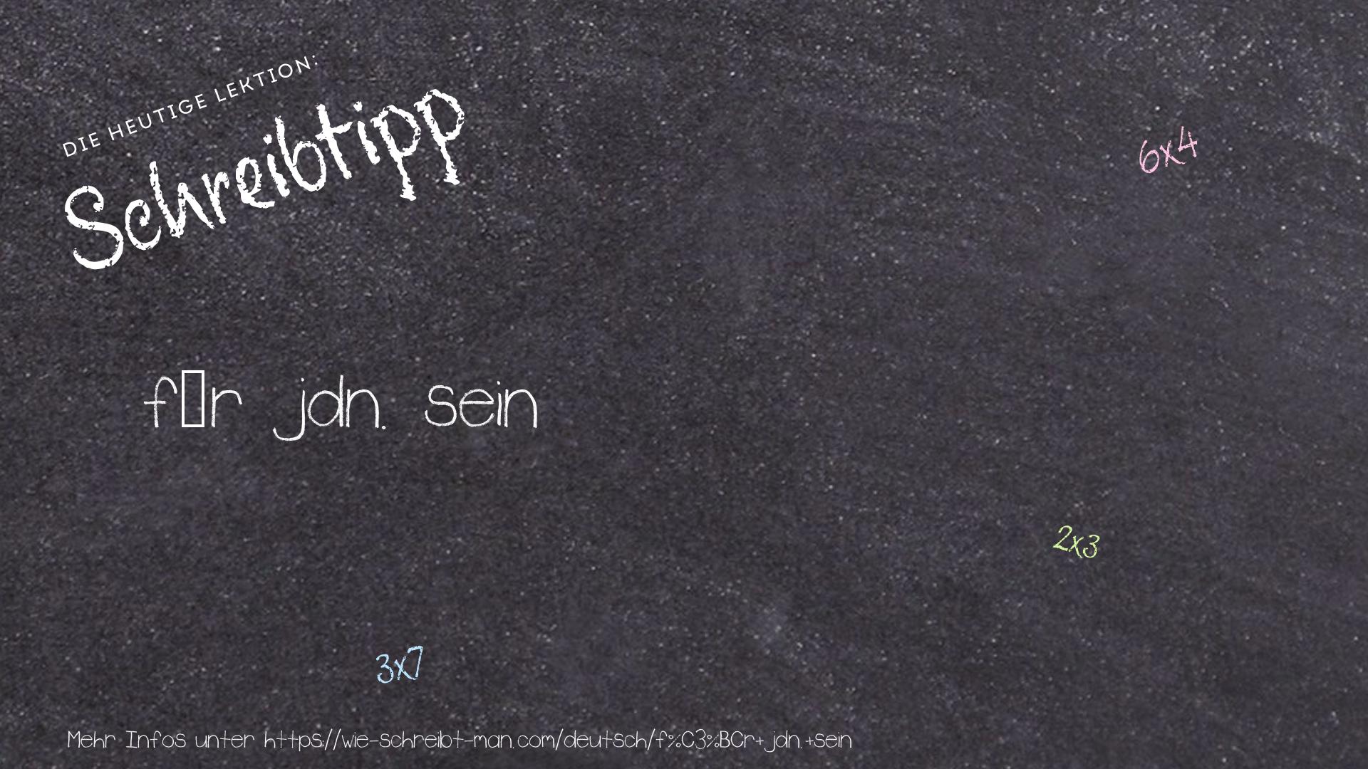 Du möchtest andere auf die richtige Schreibweise von für jdn. sein hinweisen? Hier kannst du passende Bilder zu "für jdn. sein" direkt auf Social Media teilen. Klicke dazu einfach bei dem jeweiligen Bild auf und wähle die gewünschte Variante bzw. Social Media Plattform aus.