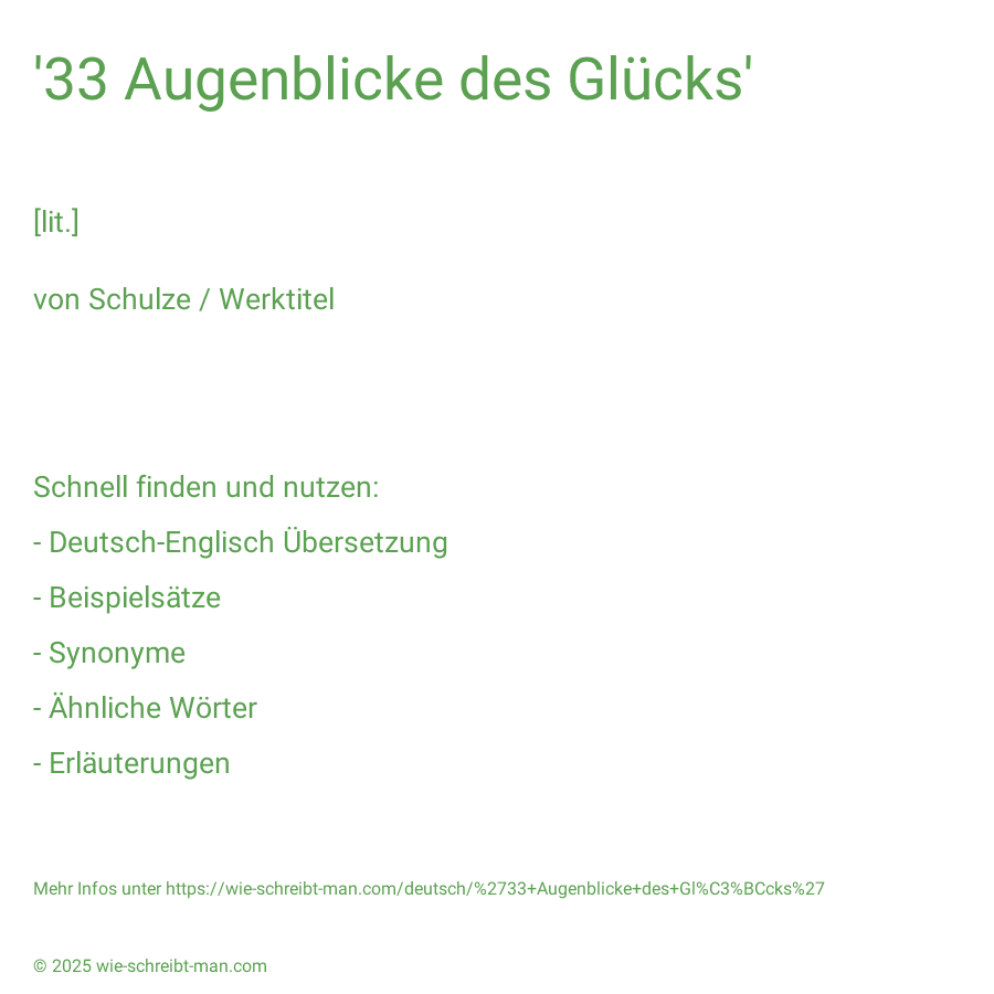 Wie schreibt man '33 Augenblicke des Glücks'?