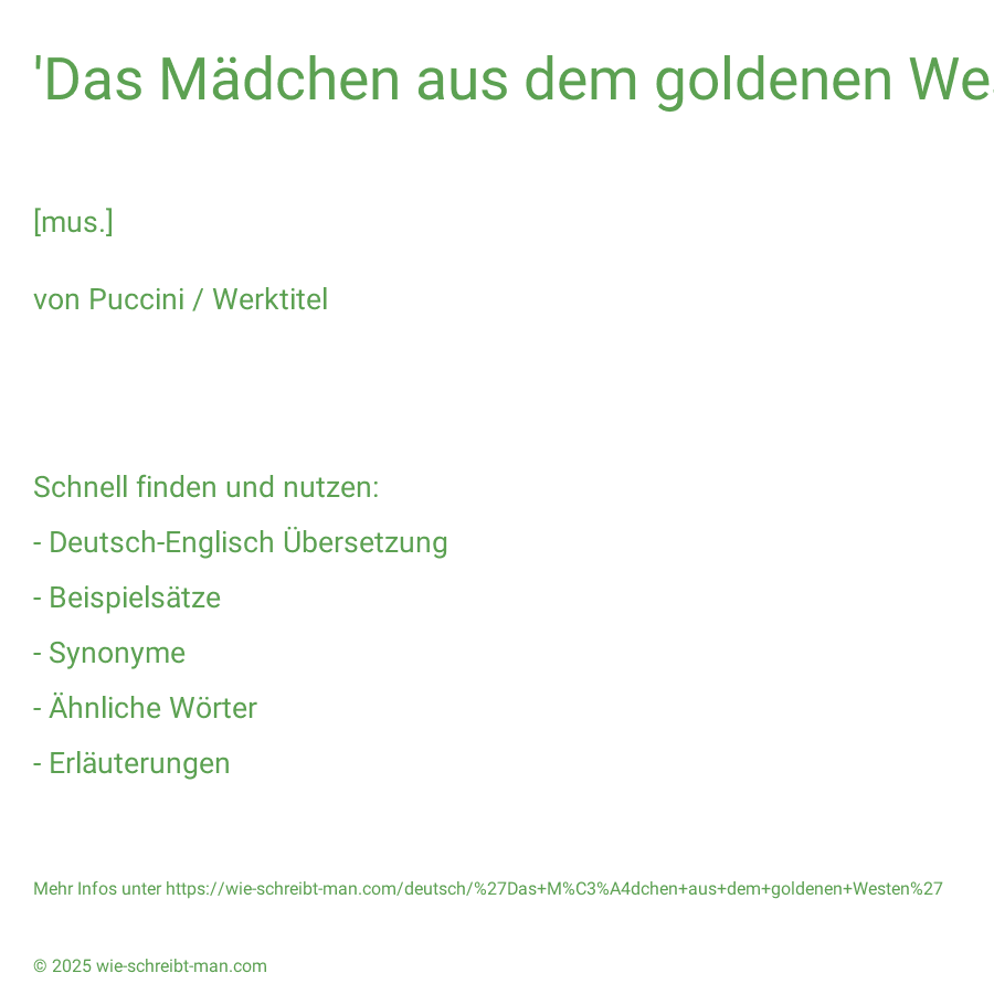 Ähnliche Wörter für 'Das Mädchen aus dem goldenen Westen'?
