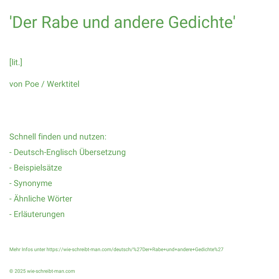 Wie schreibt man 'Der Rabe und andere Gedichte'?