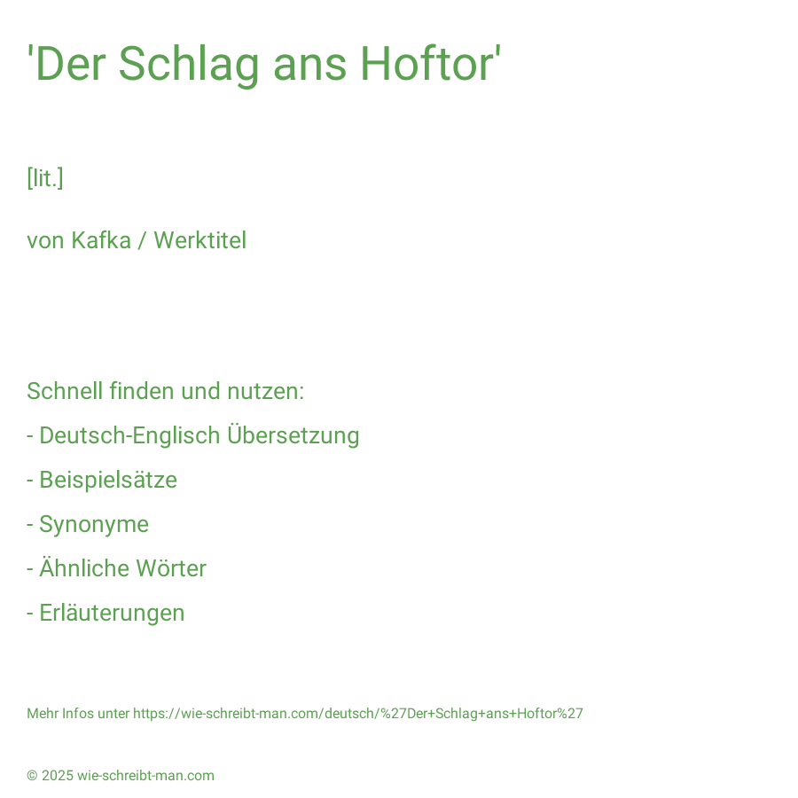 Wie schreibt man 'Der Schlag ans Hoftor'?
