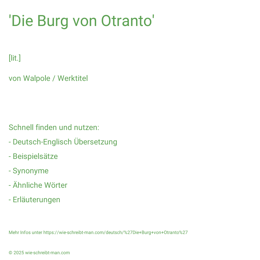 Wie schreibt man 'Die Burg von Otranto'?