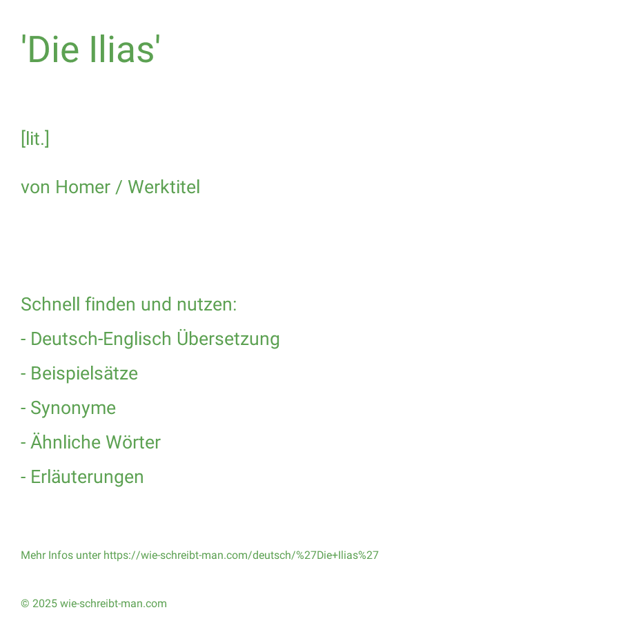 Übersetzung für ''Die Ilias'' von Deutsch nach Englisch.