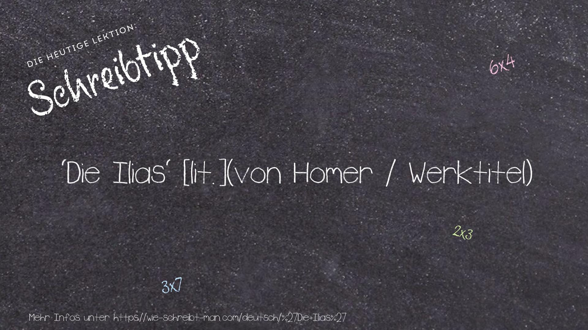 Du möchtest andere auf die richtige Schreibweise von 'Die Ilias' hinweisen? Hier kannst du passende Bilder zu "'Die Ilias'" direkt auf Social Media teilen. Klicke dazu einfach bei dem jeweiligen Bild auf und wähle die gewünschte Variante bzw. Social Media Plattform aus.