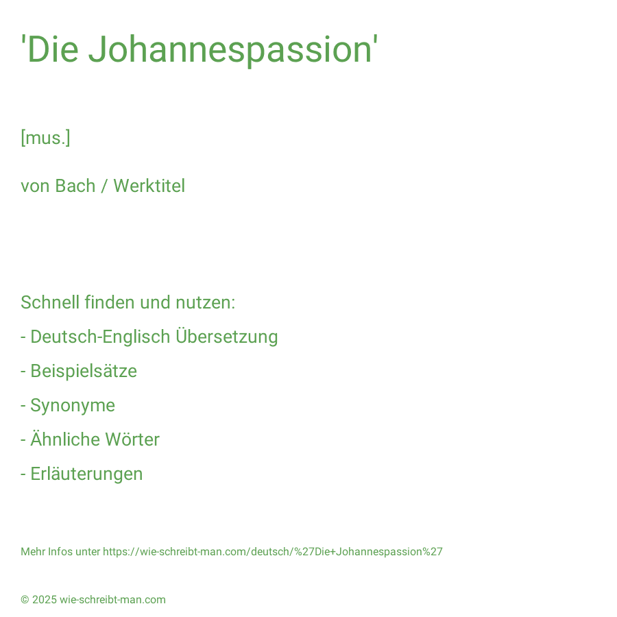 Anderes Wort bzw. Synonyme für 'Die Johannespassion'