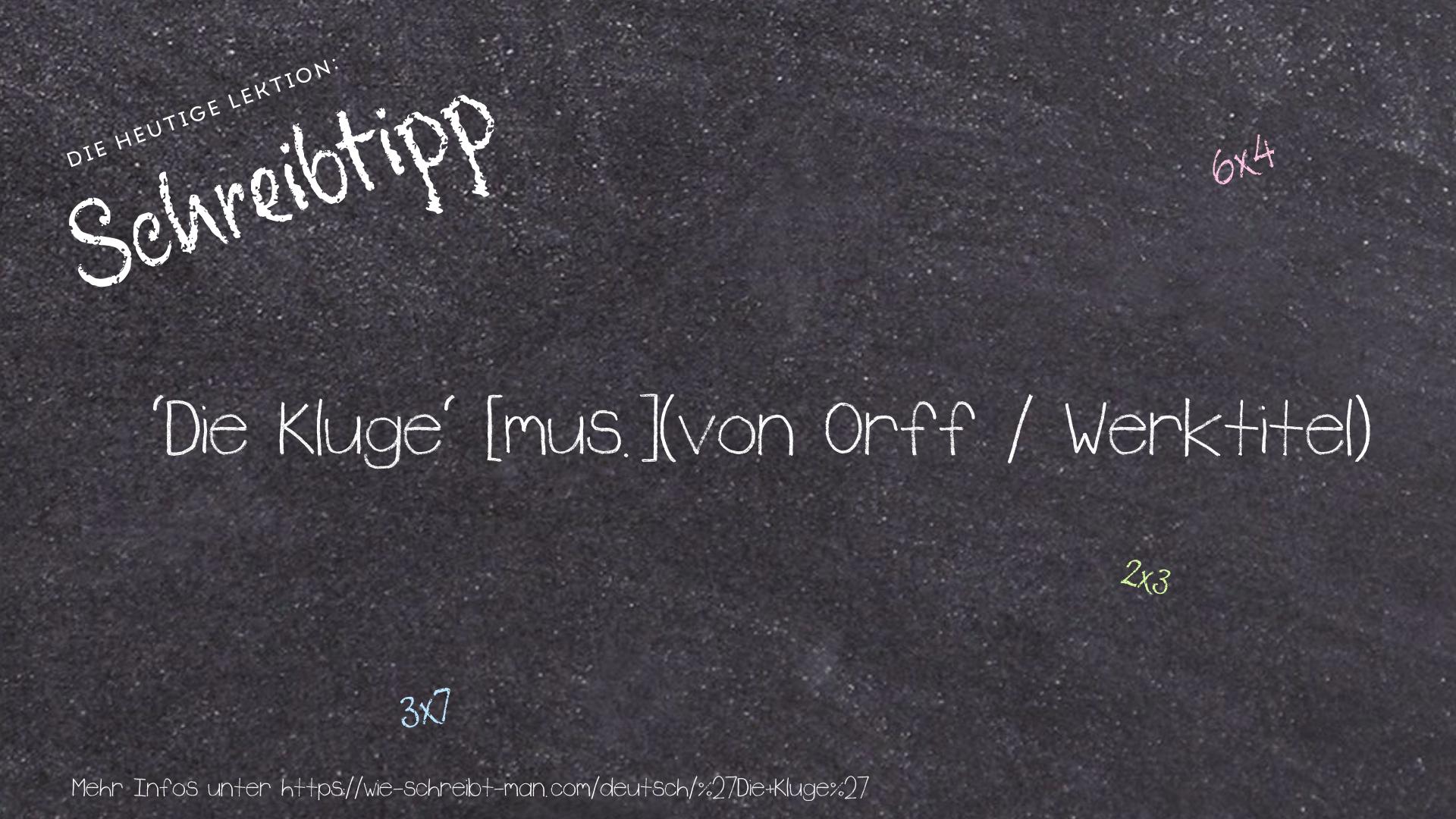 'Die Kluge' [mus.] (von Orff / Werktitel)