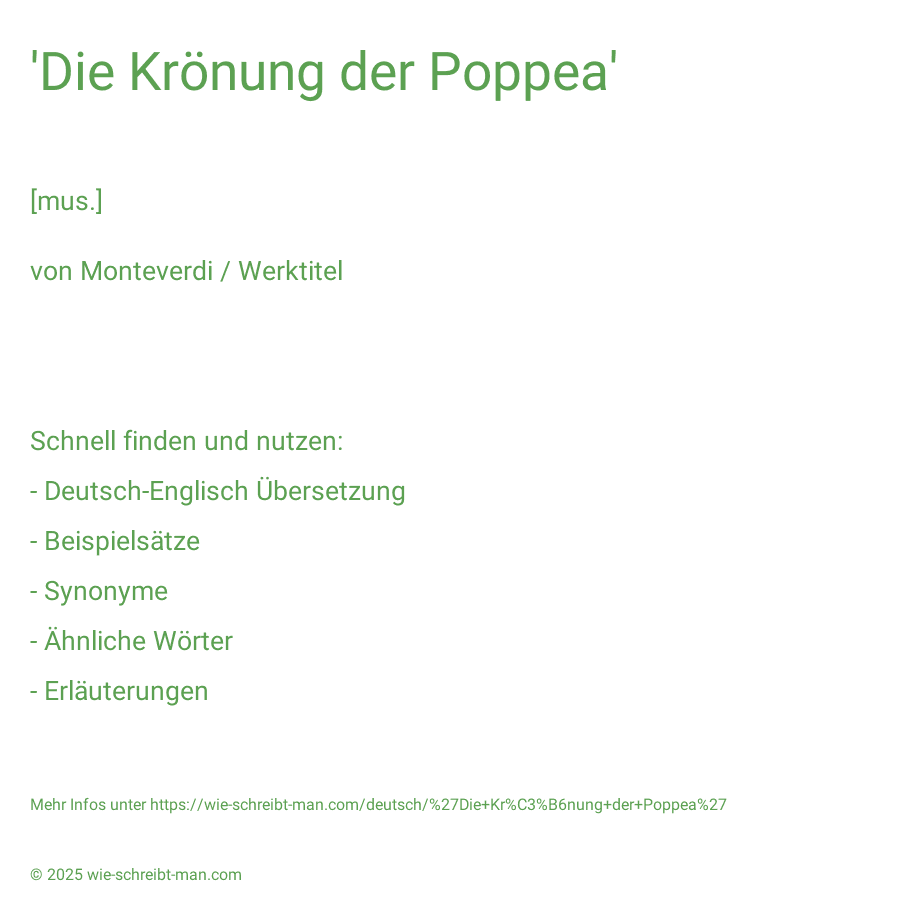Anderes Wort bzw. Synonyme für 'Die Krönung der Poppea'