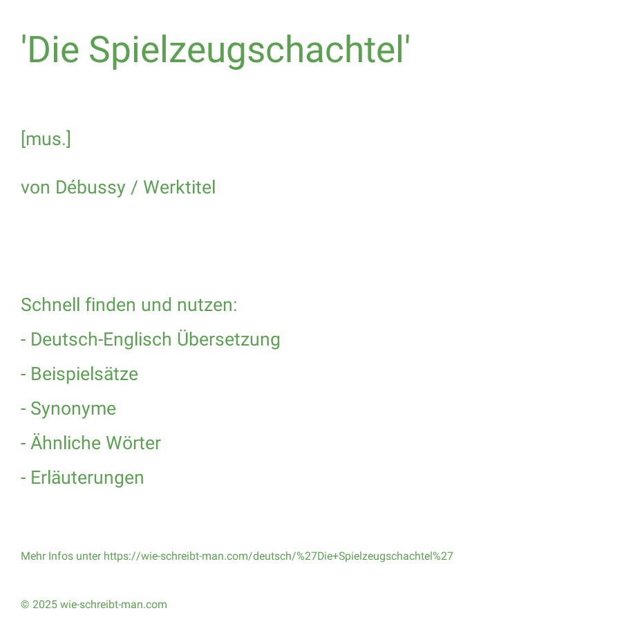 Wie schreibt man 'Die Spielzeugschachtel'?