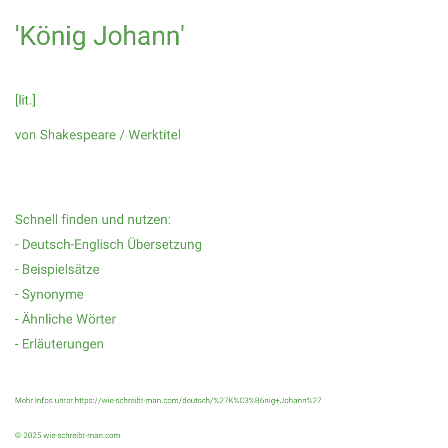 'König Johann' [lit.] (von Shakespeare / Werktitel)