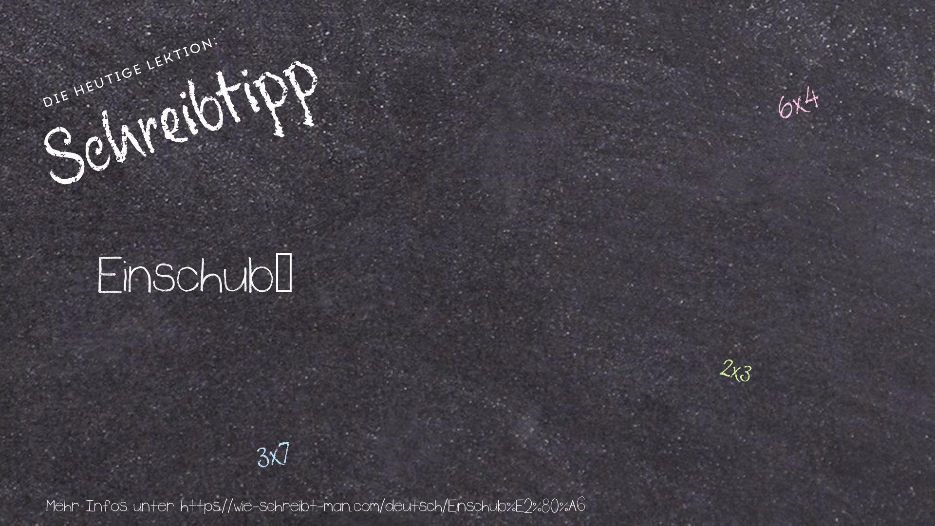 Du möchtest andere auf die richtige Schreibweise von Einschub… hinweisen? Hier kannst du passende Bilder zu "Einschub…" direkt auf Social Media teilen. Klicke dazu einfach bei dem jeweiligen Bild auf und wähle die gewünschte Variante bzw. Social Media Plattform aus.