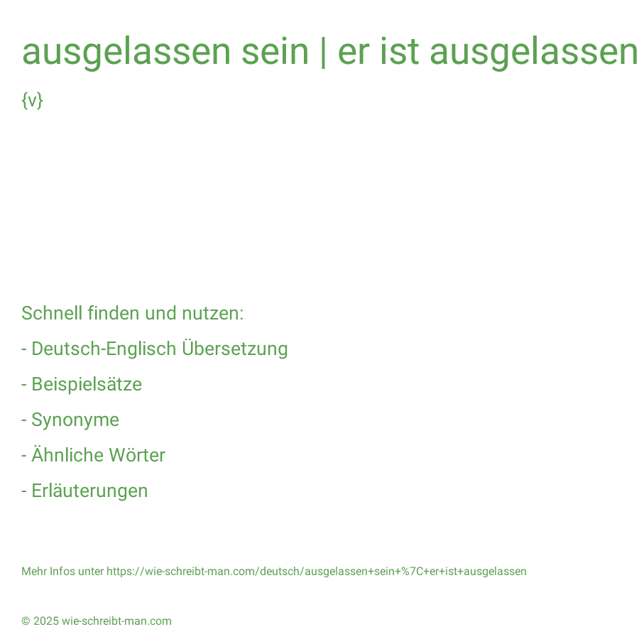 Keine Erklärung für ausgelassen sein | er ist ausgelassen gefunden.