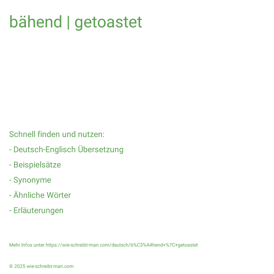 Keine Erklärung für bähend | getoastet gefunden.