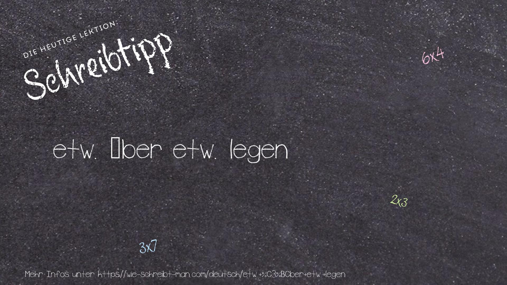 Du möchtest andere auf die richtige Schreibweise von etw. über etw. legen hinweisen? Hier kannst du passende Bilder zu "etw. über etw. legen" direkt auf Social Media teilen. Klicke dazu einfach bei dem jeweiligen Bild auf und wähle die gewünschte Variante bzw. Social Media Plattform aus.