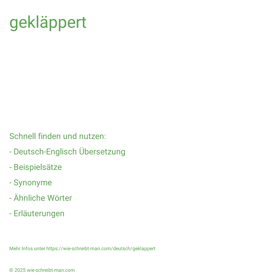 Übersetzung für 'gekläppert' von Deutsch nach Englisch.