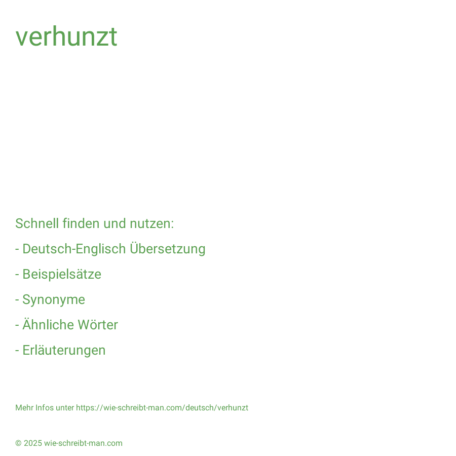 Du möchtest andere auf die richtige Schreibweise von verhunzt hinweisen? Hier kannst du passende Bilder zu "verhunzt" direkt auf Social Media teilen. Klicke dazu einfach bei dem jeweiligen Bild auf und wähle die gewünschte Variante bzw. Social Media Plattform aus.